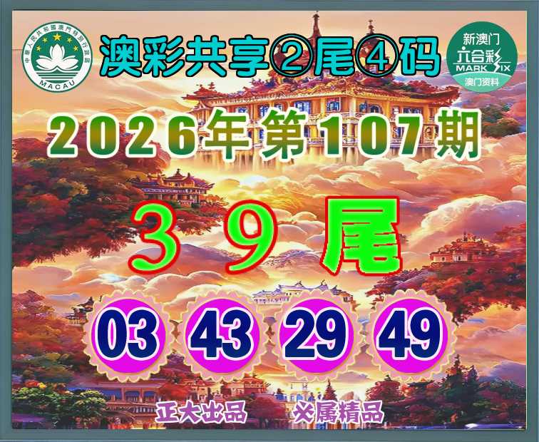 107期: 🧩『澳彩共享』 🧩②尾④码🧩【39尾主:03.43.29.49】开:49