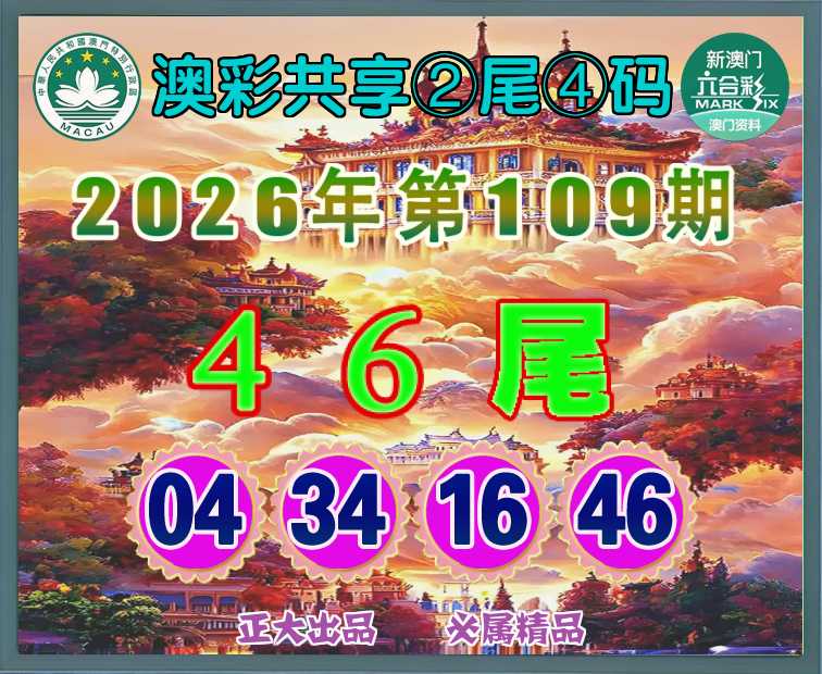 109期: 🧩『澳彩共享』 🧩②尾④码🧩【46尾主:04.34.16.46】开:16