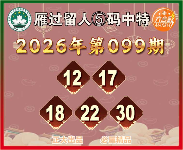 099期:【雁过留人】 🧏‍♀️⑤码中特🧏‍♀️【12.17.18.22.30】开:12