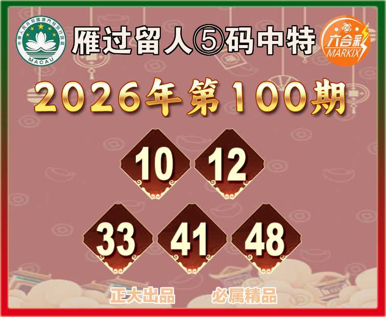 100期:【雁过留人】 🧏‍♀️⑤码中特🧏‍♀️【10.12.33.41.48】开:33