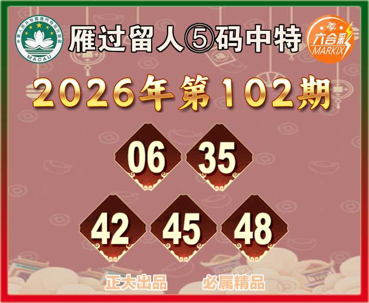 102期:【雁过留人】 🧏‍♀️⑤码中特🧏‍♀️【06.35.42.45.48】开:20