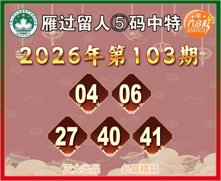 103期:【雁过留人】 🧏‍♀️⑤码中特🧏‍♀️【04.06.27.40.41】开:06