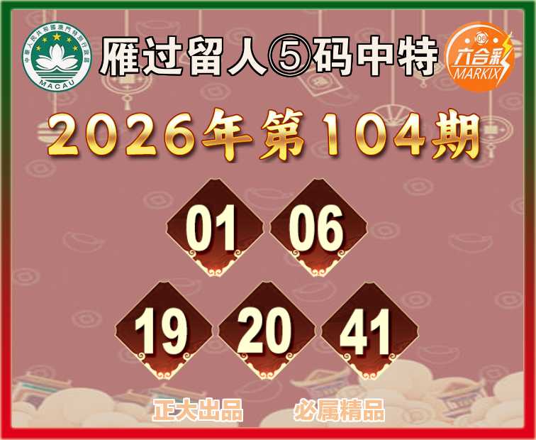 104期:【雁过留人】 🧏‍♀️⑤码中特🧏‍♀️【01.06.19.20.41】开:01
