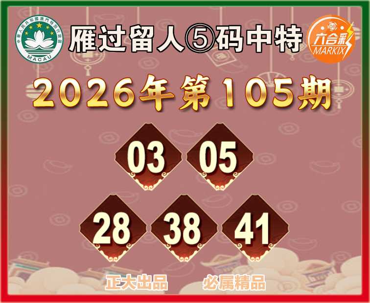 105期:【雁过留人】 🧏‍♀️⑤码中特🧏‍♀️【03.05.28.38.41】开:28