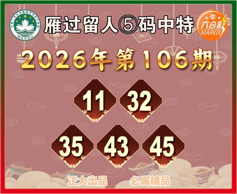 106期:【雁过留人】 🧏‍♀️⑤码中特🧏‍♀️【11.32.35.43.45】开:22