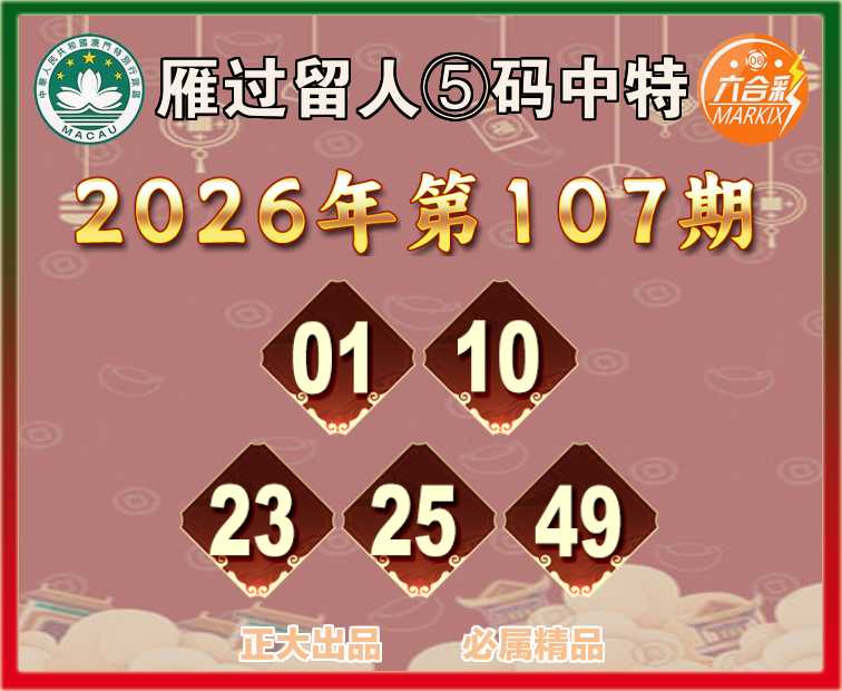 107期:【雁过留人】 🧏‍♀️⑤码中特🧏‍♀️【01.10.23.25.49】开:49