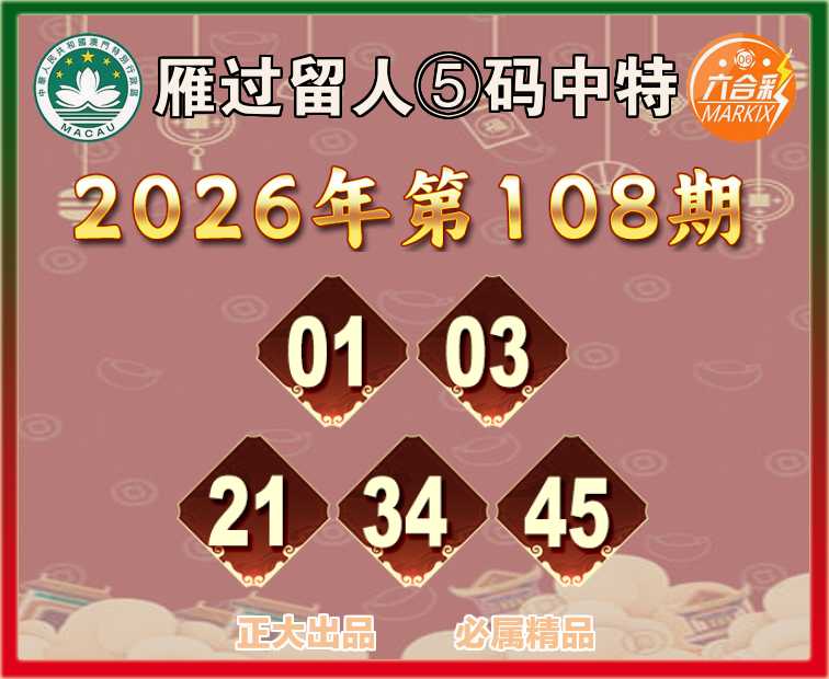 108期:【雁过留人】 🧏‍♀️⑤码中特🧏‍♀️【01.03.21.34.45】开:45