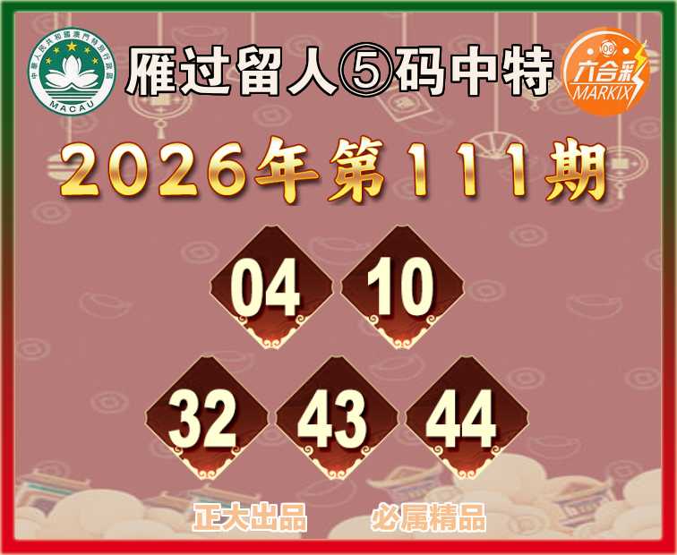 111期:【雁过留人】 🧏‍♀️⑤码中特🧏‍♀️【04.10.32.43.44】开:00准