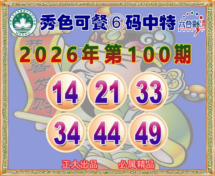 100期:【秀色可餐】⑥码中特⚽【14.21.33.34.44.49】开:33