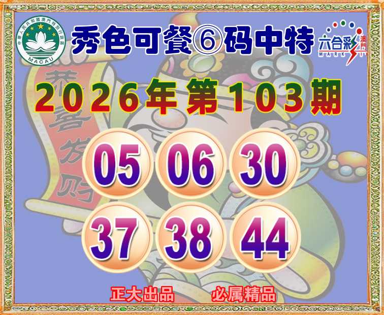 103期:【秀色可餐】⑥码中特⚽【05.06.30.37.38.44】开:06