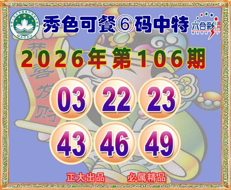 106期:【秀色可餐】⑥码中特⚽【03.22.23.43.46.49】开:22