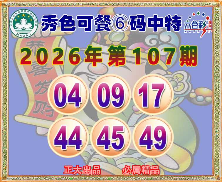 107期:【秀色可餐】⑥码中特⚽【04.09.17.44.45.49】开:49