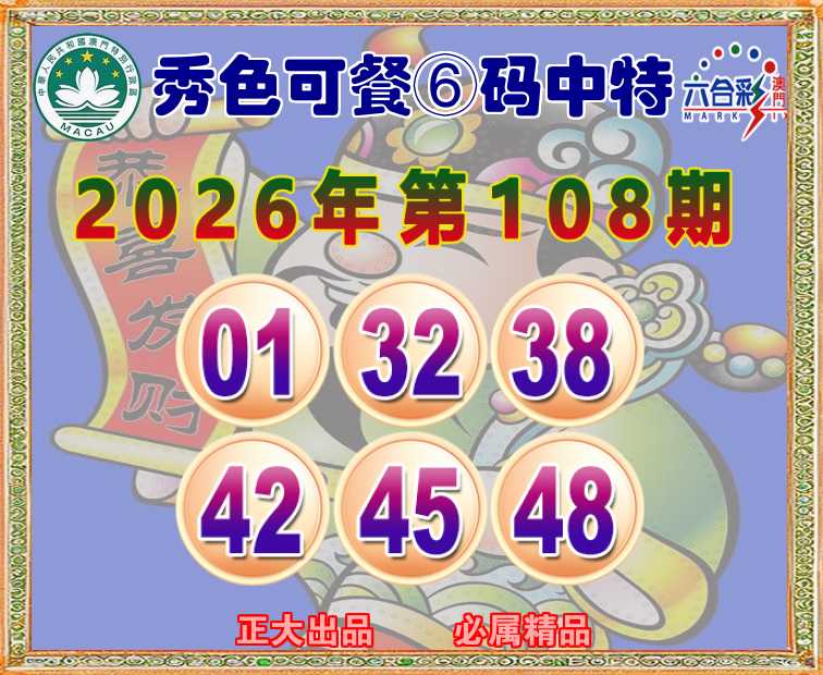 108期:【秀色可餐】⑥码中特⚽【01.32.38.42.45.48】开:45