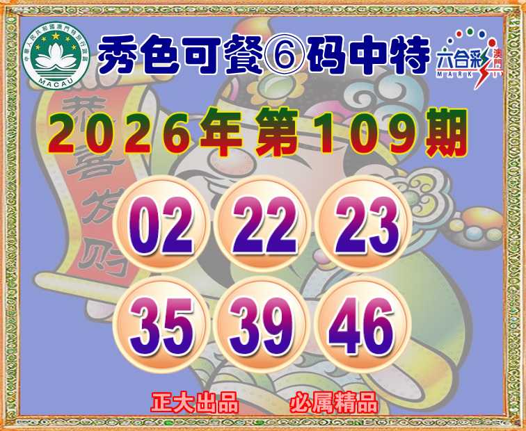 109期:【秀色可餐】⑥码中特⚽【02.22.23.35.39.46】开:16