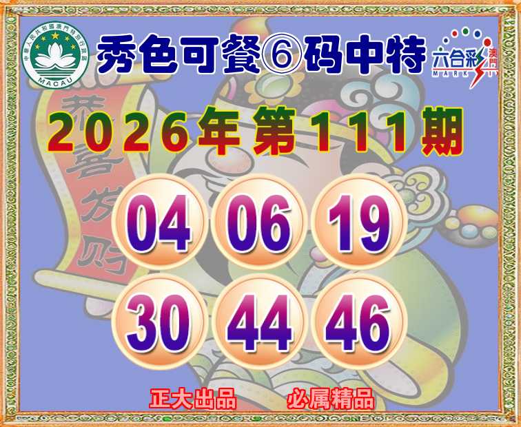 111期:【秀色可餐】⑥码中特⚽【04.06.19.30.44.46】开:00准