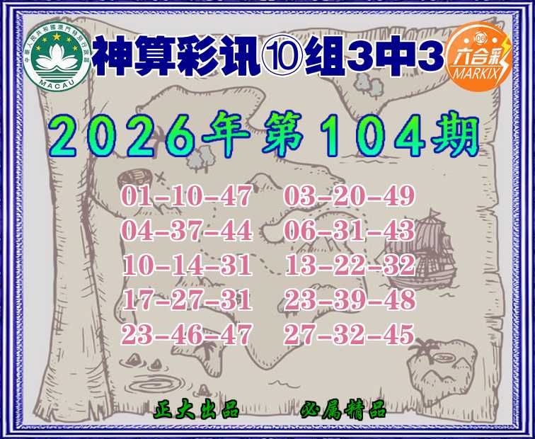104期:〖神算彩讯〗 ⛩️⑩组3中3⛩️