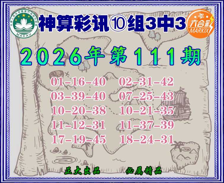 111期:〖神算彩讯〗 ⛩️⑩组3中3⛩️